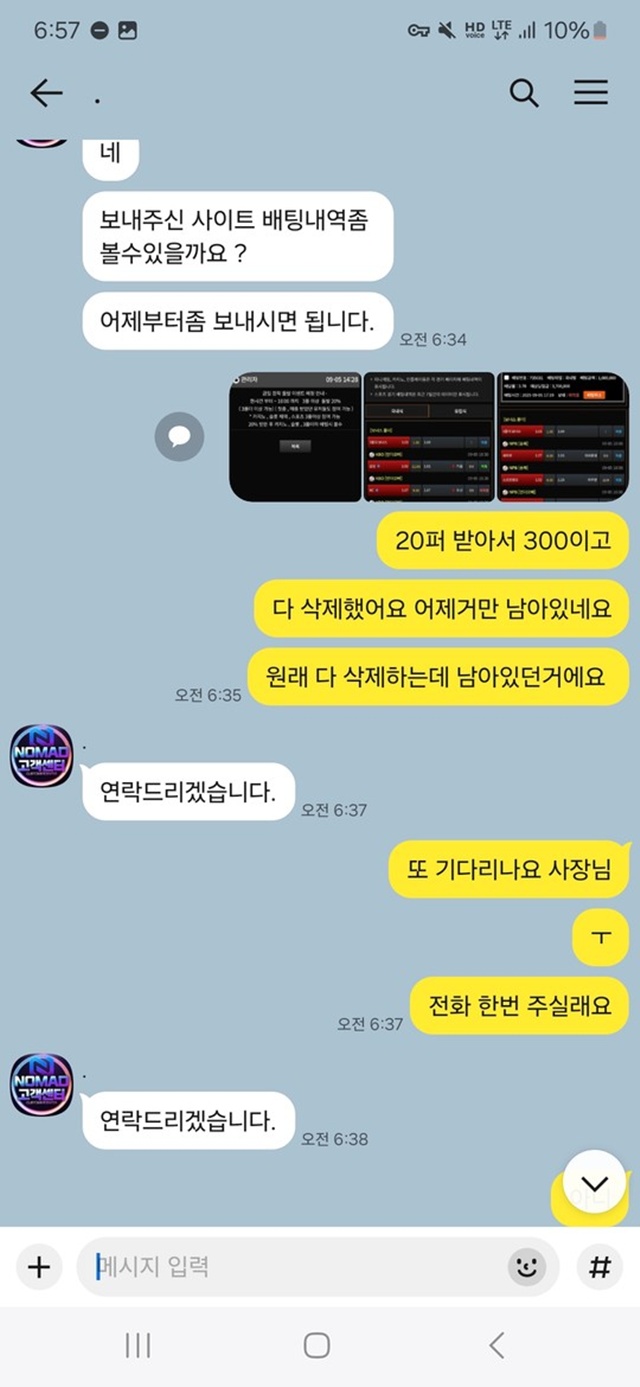 노마드(nmd-5959.com)는 288만 원의 당첨금을 "작업 배팅"이라는 근거 없는 이유로 몰수하고 협박으로 회원을 겁주는 악질 먹튀 사이트입니다. 피해자의 제보에 따르면, 이 사이트는 터무니없는 변명과 계정 차단으로 이용자를 기만했습니다. 이용 중지하세요! 온라인 배팅을 즐기는 모든 이용자는 노마드와 같은 먹튀 사이트를 철저히 피하고, 검증된 플랫폼만 이용해야 합니다. 먹튀 피해로 소중한 자산을 잃지 않도록 항상 경계하세요.
