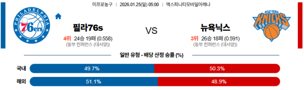 01월25일 필라델피아:뉴욕 NBA 분석 및 예측 스포츠중계:스포츠무료중계