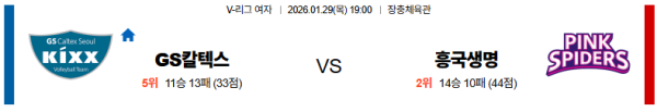 01월29일 GS칼텍스:흥국생명 V리그(여) 분석 및 예측 스포츠중계:스포츠무료중계
