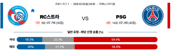 02월02일 스트라스부르:파리생제르망 리그앙 분석 및 예측 스포츠중계:스포츠무료중계