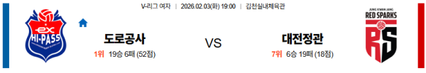 02월03일 한국도로공사:대전정관장 V리그(여) 분석 및 예측 스포츠중계:스포츠무료중계