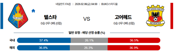 02월06일 텔스타:고어헤드이글스 네덜란드FA컵 분석 및 예측 스포츠중계:스포츠무료중계