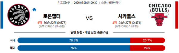 02월06일 토론토:시카고 NBA 분석 및 예측 스포츠중계:스포츠무료중계