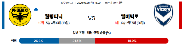 02월06일 웰링턴피닉스:멜버른빅토리 호주A리그 분석 및 예측 스포츠중계:스포츠무료중계