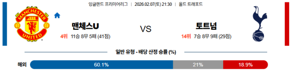 02월07일 맨유:토트넘 프리미어리그 분석 및 예측 스포츠중계:스포츠무료중계