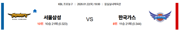 01월22일 서울삼성:대구가스공사 KBL 분석 및 예측 스포츠중계:스포츠무료중계