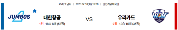 02월10일 대한항공:우리카드 V리그 분석 및 예측 스포츠중계:스포츠무료중계