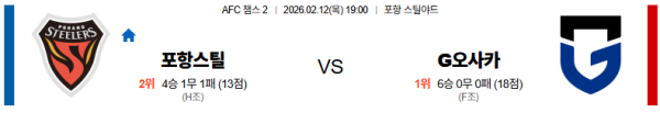 02월12일 포항:감바오사카 AFC챔피언스리그2 분석 및 예측 스포츠중계:스포츠무료중계