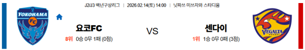 02월14일 요코하마FC:베갈타센다이 J리그백년구상리그 분석 및 예측 스포츠중계:스포츠무료중계