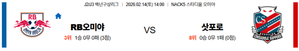 02월14일 오미야:삿포로 J리그백년구상리그 분석 및 예측 스포츠중계:스포츠무료중계