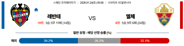 01월24일 레반테:엘체 라리가 분석 및 예측 스포츠중계:스포츠무료중계