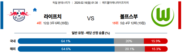 02월16일 볼프스부르크:라이프치히 분데스리가 분석 및 예측 스포츠중계:스포츠무료중계