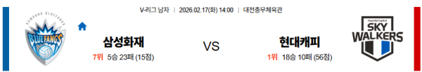 02월17일 삼성화재:현대캐피탈 V리그 분석 및 예측 스포츠중계:스포츠무료중계