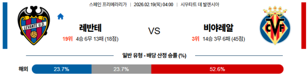 02월19일 레반테:비야레알 라리가 분석 및 예측 스포츠중계:스포츠무료중계