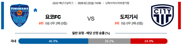 요코하마:도치기시티 J리그백년구상리그 02월22일 분석 및 예측 스포츠중계:스포츠무료중계