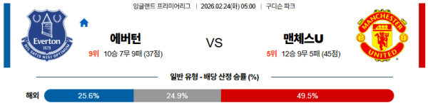 에버턴:맨유 프리미어리그 02월24일 분석 및 예측 스포츠중계:스포츠무료중계